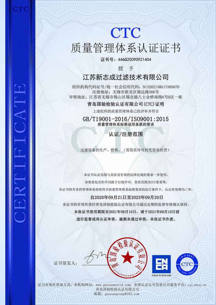 CTC质量管理体系认证证书